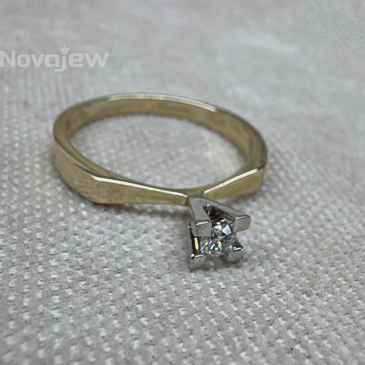 Two-tone 18K pure gold ring with a single gemstone. Brilliant-cut gemstone, approximately 0.17 carats.