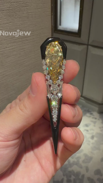11Ctw Black Enamel Pear-Shaped Yellow Gemstone Brooch