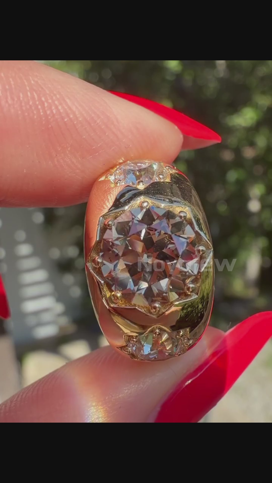 2.08 Ctw Round Cut Vintage Yellow Gold Diamond Star Ring