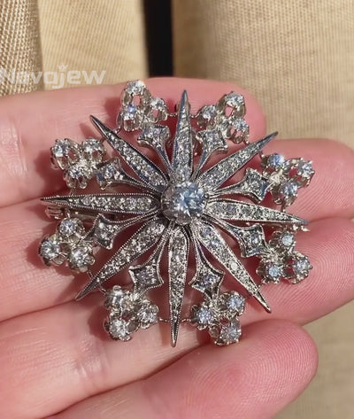 3.23Ctw Round Gemstone Snowflake Pendant Necklace Brooch