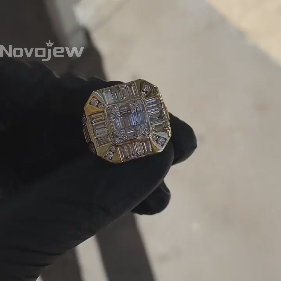 3.86Ctw Baguette Round Gemstone Men's Statement Ring