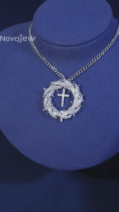 4.0ctw Gemstone Thorn Wreath Cross Pendant Necklace