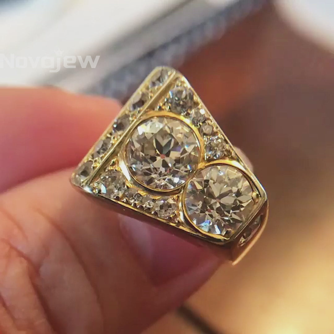 4.1Ctw Old European Cut Double Stone Men's Ring