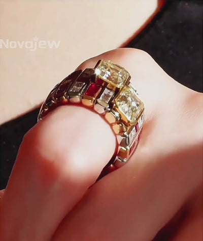 18K two-tone gold plating, center stones approximately 2.7ct and 2.16ct emerald-cut, respectively