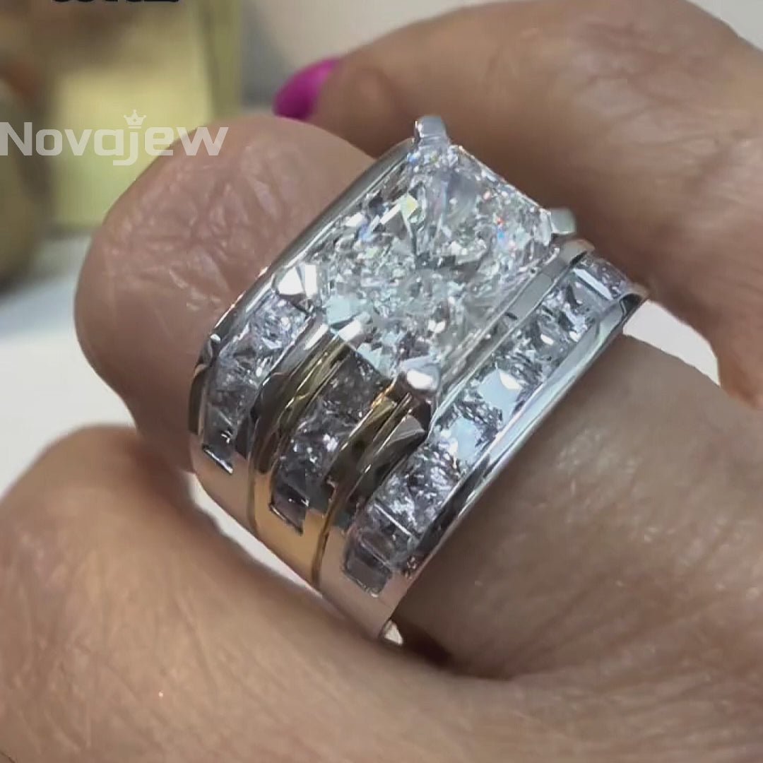 4Ctw Radiant Cut Three-Row Gemstone Two-Tone Ring
