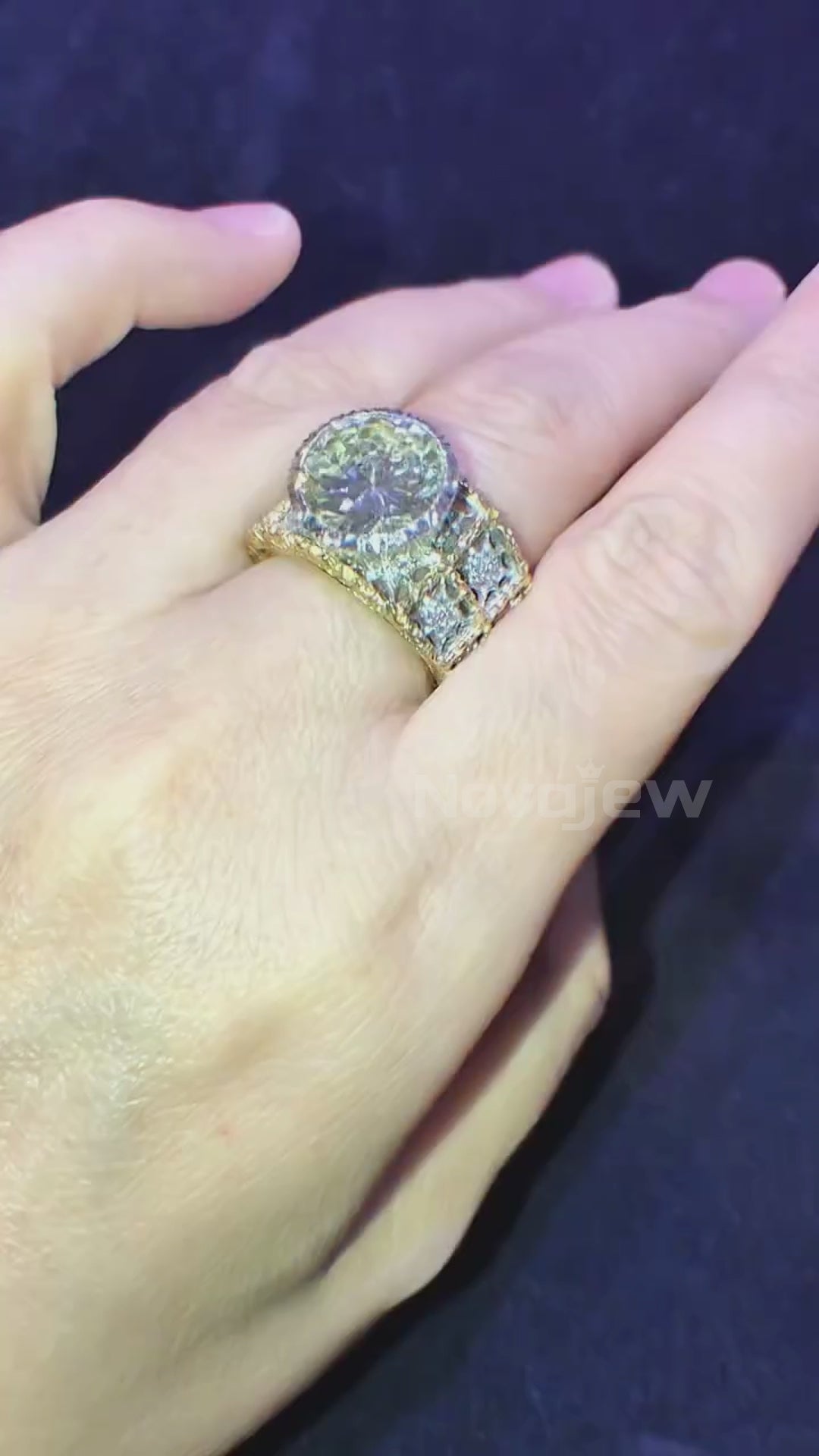 5 Ctw Round Cut Diamond Hand-engraved Rigato Luxury Ring
