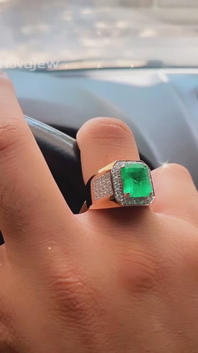 6.66ctw Octagonal Emerald Men's Ring