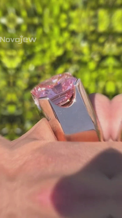 6Ct Simple Style Pink Asscher Stone Ring