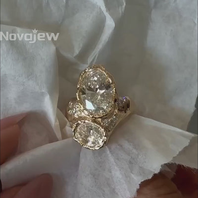 A dazzling pair of gemstones, one-of-a-kind. Their irregular oval cut, paired with a rustic gold setting, sparkles like stars and is as elegant as a work of art.