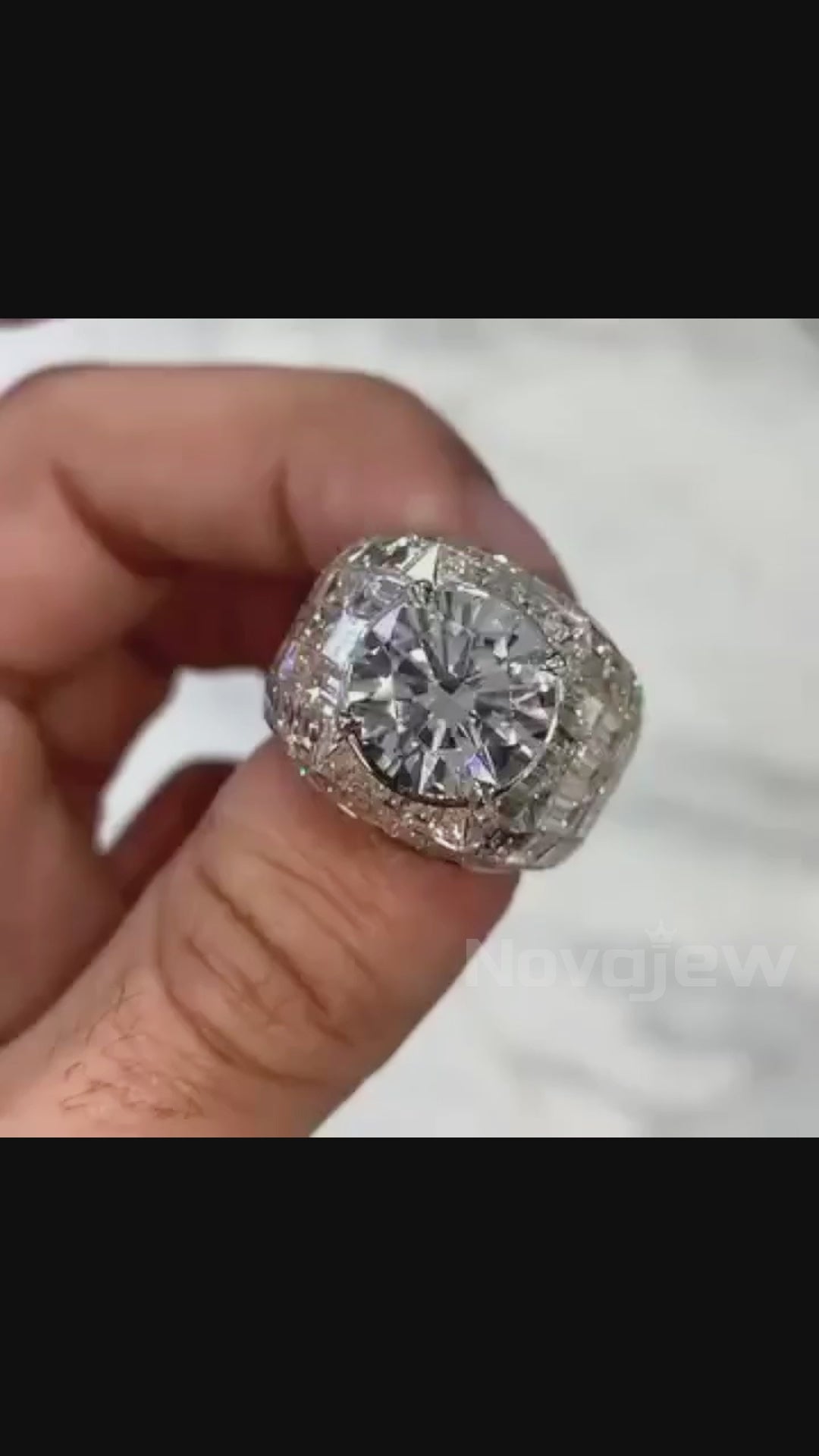 8ctw Round & Baguette Cut White Sapphire Men's Engagement Ring