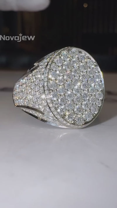 This gorgeous full-stamped men's ring will undoubtedly turn heads! Featuring brilliant round cut white gemstones set all over. The simplicity of the design makes this ring perfect for everyday wear. Total weight is approximately 4 carats. The ring is made of 925 silver throughout, with thick gold plating, which makes the luster last longer compared to other single layer plating. The style is personalized and simple, bringing more possibilities for your fashion collocation.